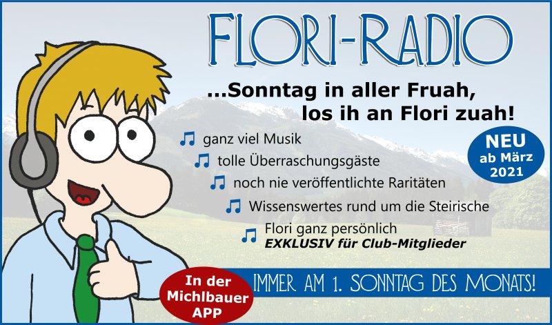 “SONNTAG IN ALLER FRUAH – LOS IH AN FLORI ZUAH” – lautet das Motto unseres exklusiven Flori-Radios.