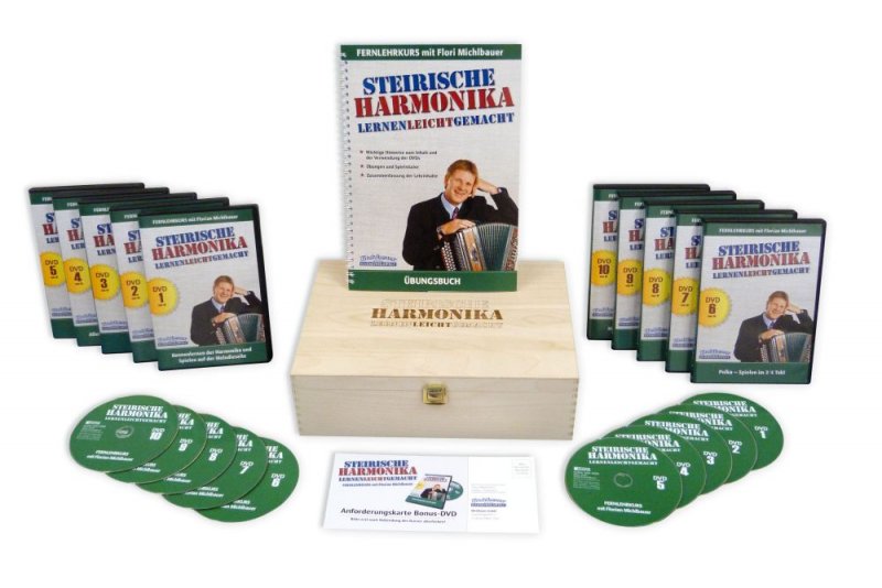 Ich habe schon seit längerer Zeit mit dem Gedanken gespielt, ein Instrument zu erlernen. Durch Zufall bin ich im Internet auf den Fernlehrkurs von Florian Michlbauer gestoßen. Da hats gefunkt! Inzwischen habe ich alle DVDs und eine Harmonika erhalten. Ich übe nun schon 10 Tage und es macht mir zunehmend mehr Freude.