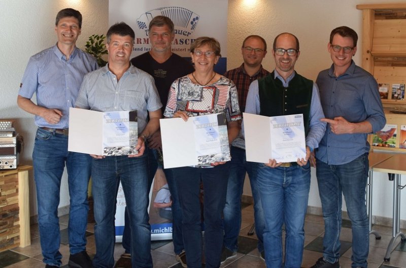 Die erste Zeit war völlig easy, doch dann merkte ich, wie sich in meine Spielweise auch Fehler einschlichen. Die Steirische Harmonika ist nun einmal kein Akkordeon. Harmonika-Seminare waren zwar hilfreich, lagen aber zeitlich und territorial zu sehr auseinander. Die Suche nach einem Lehrer in meiner Region war erfolglos. Da bot sich mir die Michlbauer-Lehrerausbildung als Alternative. – Warum nicht selbst Lehrer werden?? – Ich meldete mich zum Lehrer-Seminar an und wurde angenommen! Johannes Petz hat mir dann bis zum Beginn der Ausbildung den nötigen Feinschliff gegeben und mich während der gesamten Ausbildung weiter begleitet, so dass ich die Prüfung 2020 erfolgreich bestanden habe.