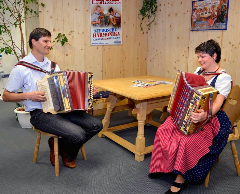 Nach dem frühen Tod meines Vaters im Jahre 2003 wuchs in mir der Wunsch, auf seiner alten Novak die Steirische zu erlernen. Wie es der Zufall wollte, fand einige Zeit später bei uns in Weißenbach im November 2004 ein Info-Abend mit Florian Michlbauer statt. Anfangs noch etwas skeptisch – ich konnte mir das Spielen mit 5 Fingern zuerst kaum vorstellen, da ich davon noch nie gehört hatte – ging ich dorthin und war innerhalb weniger Minuten vollkommen von dieser Methode überzeugt! Sofort meldete ich mich zum Unterricht an und war von Anfang an mit Begeisterung und Eifer dabei. Mit Johannes Petz hatte ich den für mich idealen Lehrer gefunden. Er hat mir alles beigebracht, was ich heute auf der Steirischen kann.