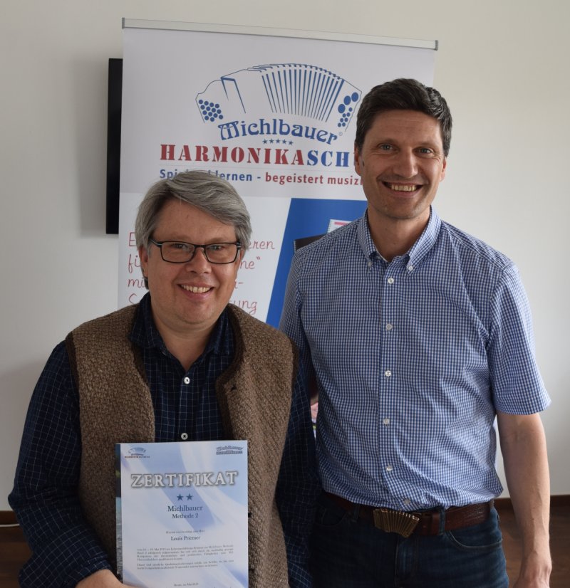 Die Steirische Harmonika hab' ich durch meine Frau, die 2008 bei Michlbauer gearbeitet hatte, kennen gelernt. Ich war zunächst eher skeptisch dem Instrument gegenüber, war aber dann doch überrascht, wie leicht und schnell sich die Harmonika erlernen lässt und ging dann gleich bei Johannes Petz in den Unterricht. Zwei Jahre später habe ich die Michlbauer Lehrerprüfung angelegt und begann selbst zu unterrichten.