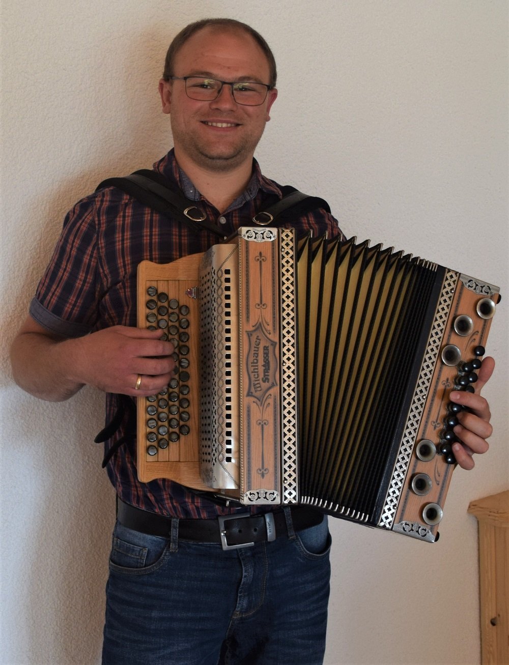 Schon immer von Musik begeistert, habe ich im Alter von sieben Jahren bei uns in der Grundschule zwei Jahre lang den Blockflötenunterricht besucht. Da mich aber schon immer die Volksmusik und die volkstümliche Musik begeistert haben, habe ich anschließend im Alter von neun Jahren das Akkordeonspielen begonnen. Nach weiteren drei Jahren Unterricht in der Musikschule, habe ich das Musizieren wegen der Schule, der anschließenden Lehre und anderen Interessen leider ein paar Jahre aus den Augen verloren. Im Alter von 25 Jahren habe ich dann endlich angefangen mein eigentliches Trauminstrument, die Steirische Harmonika, zu erlernen. Zuerst zwei Jahre im Selbststudium mit der Michlbauer Methode, anschließend im Unterricht in Reutte. Seitdem mache ich sehr gerne mit Freunden zusammen Musik oder spiele auf Familienfeiern und Geburtstagsfeiern.