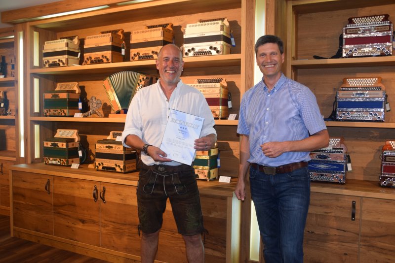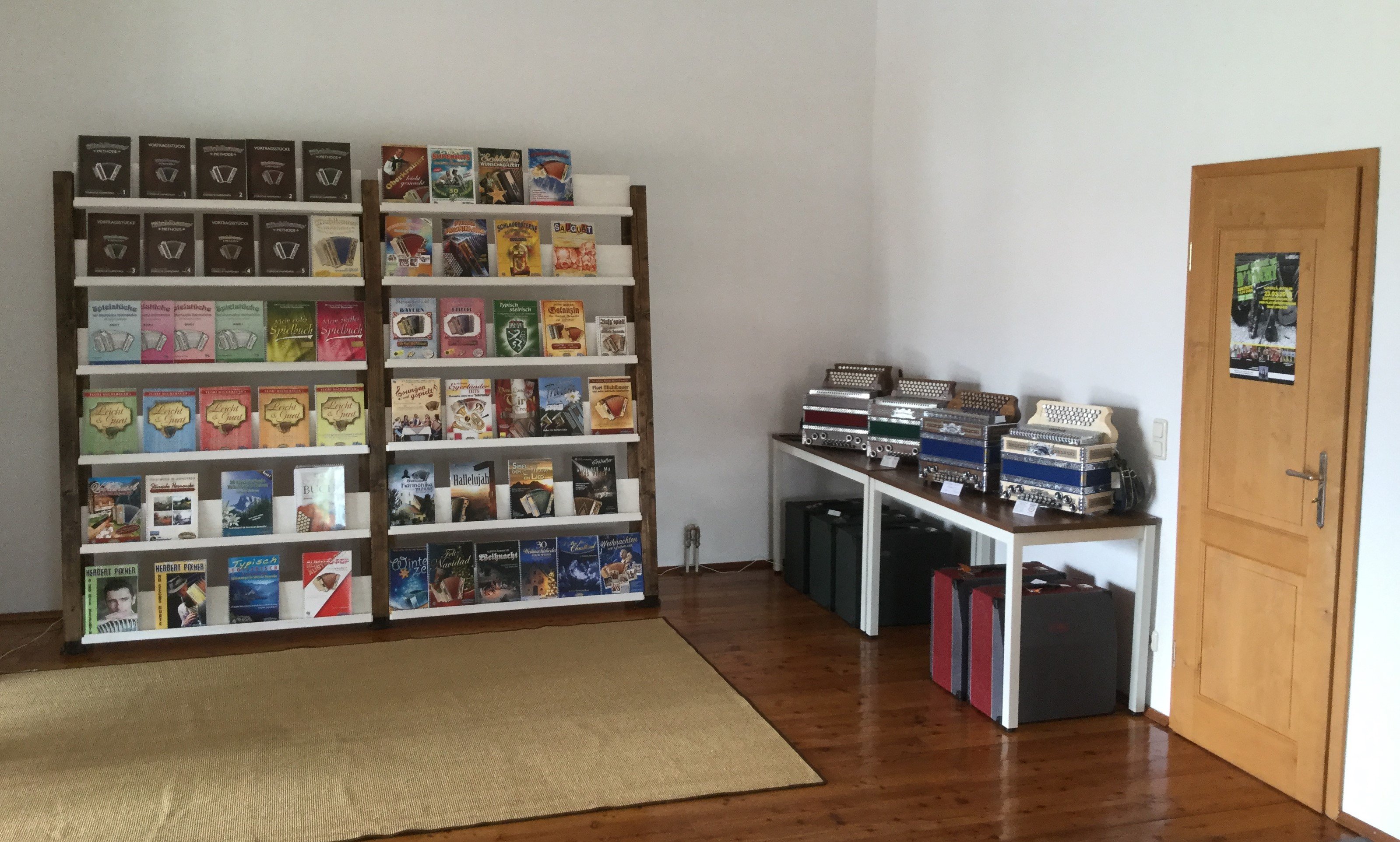 Nach der ersten Schnupperstunde ging‘s gleich nach Reutte zur Fa. Michlbauer um eine Harmonika zu kaufen. Wolfi war natürlich mit dabei um mich zu unterstützen.