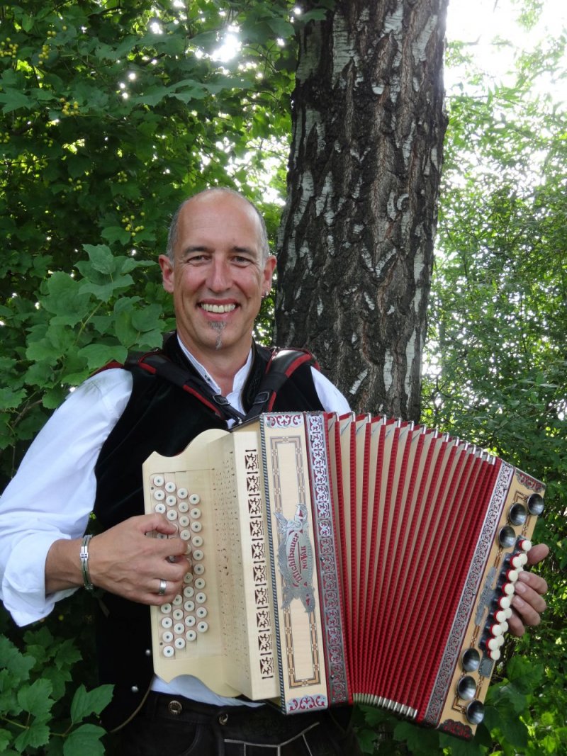 So entschloss ich mich auf die „Steirische“ umzusatteln und bin über die Internetsuche auf Wolfi gekommen den ich bereits flüchtig kannte von seinen vielen Auftritten mit seiner damaligen Band „Espresso“ bei uns im Lande. (Allgäu) Das er nun auch Harmonikaunterricht gibt war mir neu.