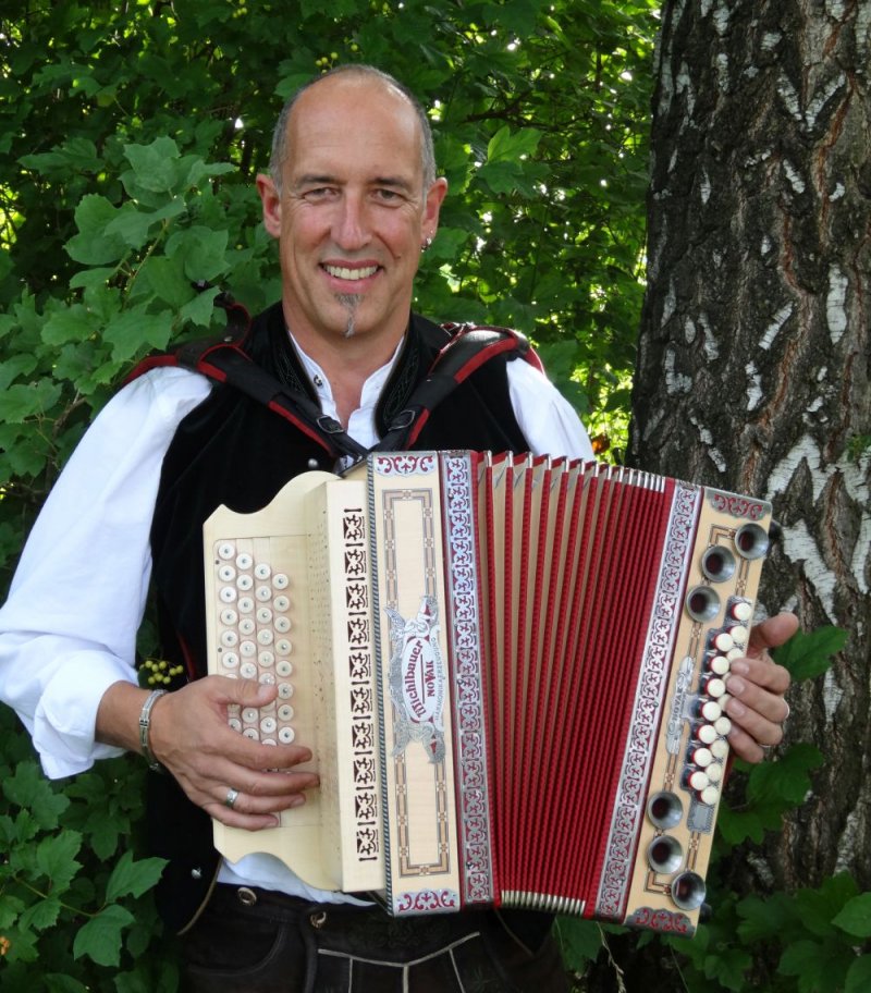 mein Name ist Wolfgang Filser aus Jengen im Ostallgäu und ich möchte euch hier einen Einblick in meine Harmonika-Schule geben. Zur Steirischen Harmonika kam ich durch puren Zufall. Auf der Musikmesse in Frankfurt hat mich der Klang einer Novak-Harmonika am Michlbauer Messestand fasziniert. Viele Jahre später kaufte ich mir dann eine Harmonika und lernte im Eigenstudium mittels Heft 1 und Heft 2 die Michlbauer Methode kennen, habe jedoch bald bemerkt, dass ich ohne professionellen Lehrer langsam an meine Grenzen gestoßen bin. Daraufhin habe ich mehrere Jahre regelmäßig Unterricht bei Johannes Petz (Michlbauer) genommen und alsbald auch die Ausbildung zum Harmonikalehrer begonnen, welche ich im Jahr 2017 erfolgreich abgeschlossen habe. Anfangs in Nebentätigkeit zu meinem Beruf als Vertriebsmitarbeiter habe ich im Juli 2019 den Schritt in die komplette Selbständigkeit gewagt und meinen Traum von „Wolfi’s Harmonika-Schual“ wahrgemacht.