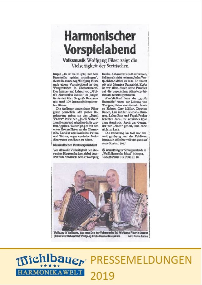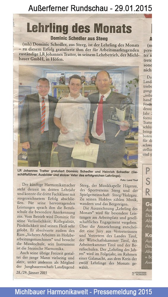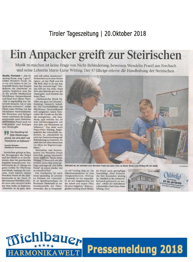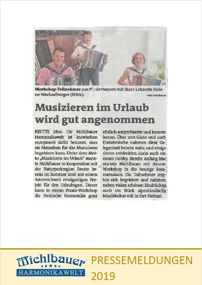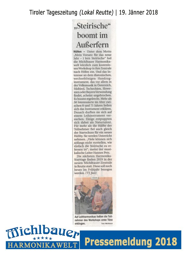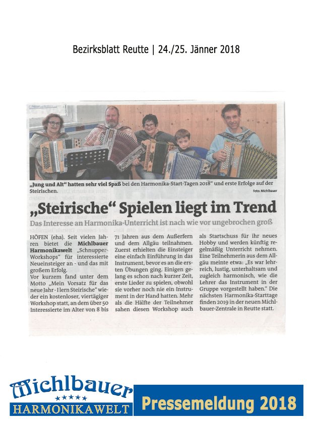 Unter dem Motto: „ Mein Vorsatz für das neue Jahr – I lern Steirische“ fanden auch dieses Jahr wieder die Harmonika-Start-Tage der Michlbauer Harmonikawelt statt.