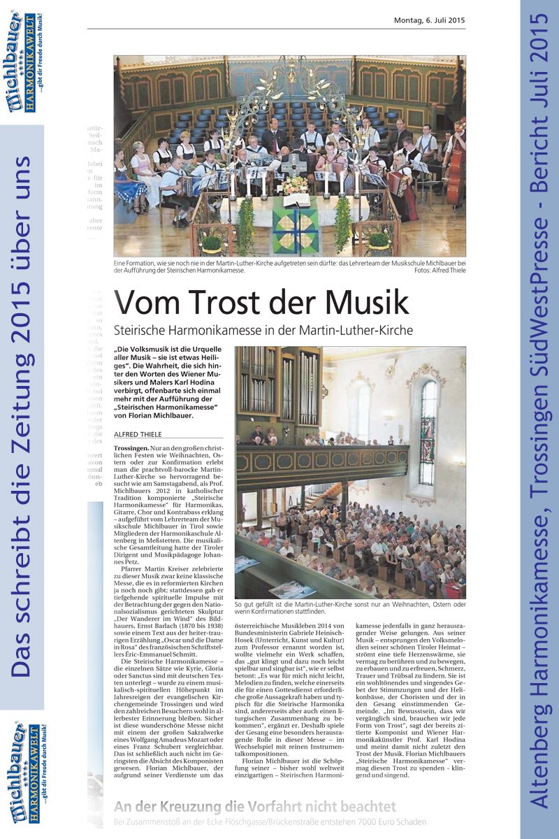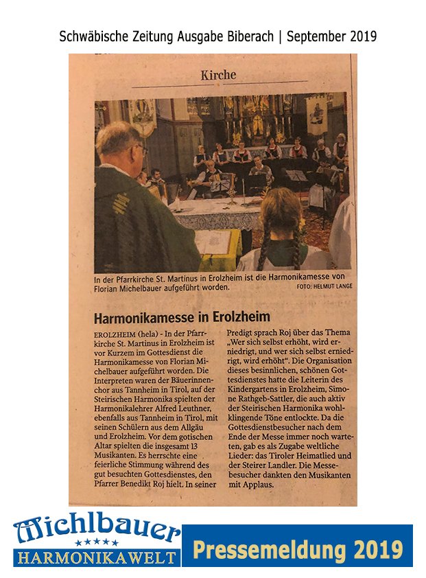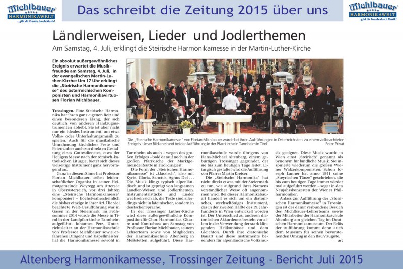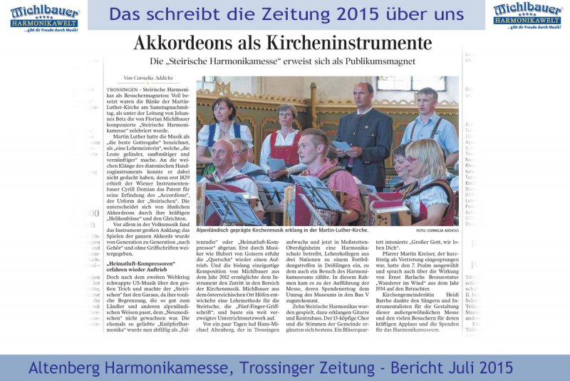 Am Samstag, 4. Juli, erklingt die Steirische Harmonikamesse in der Martin-Luther-Kirche