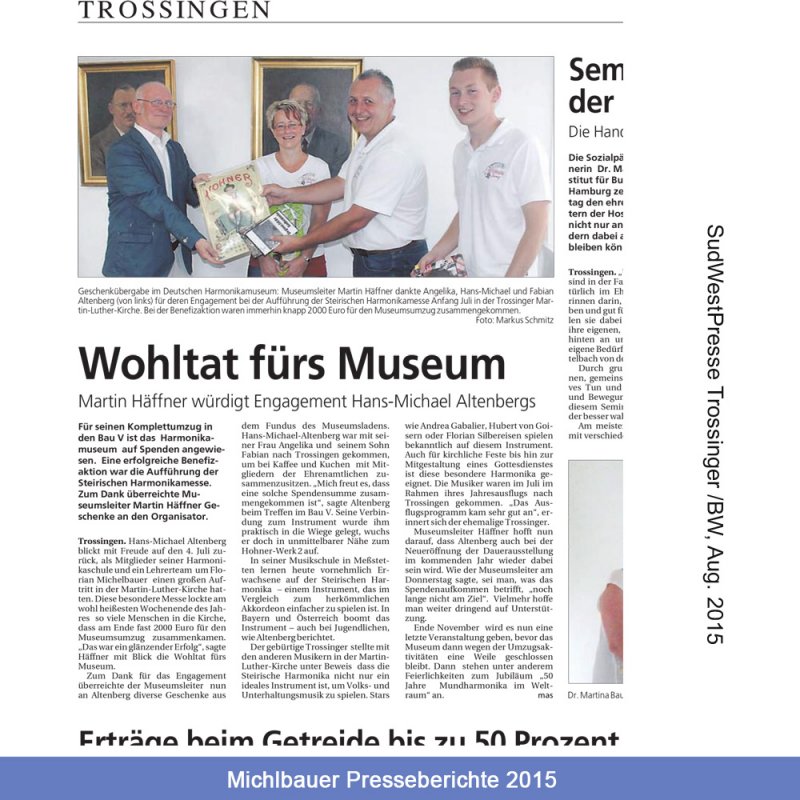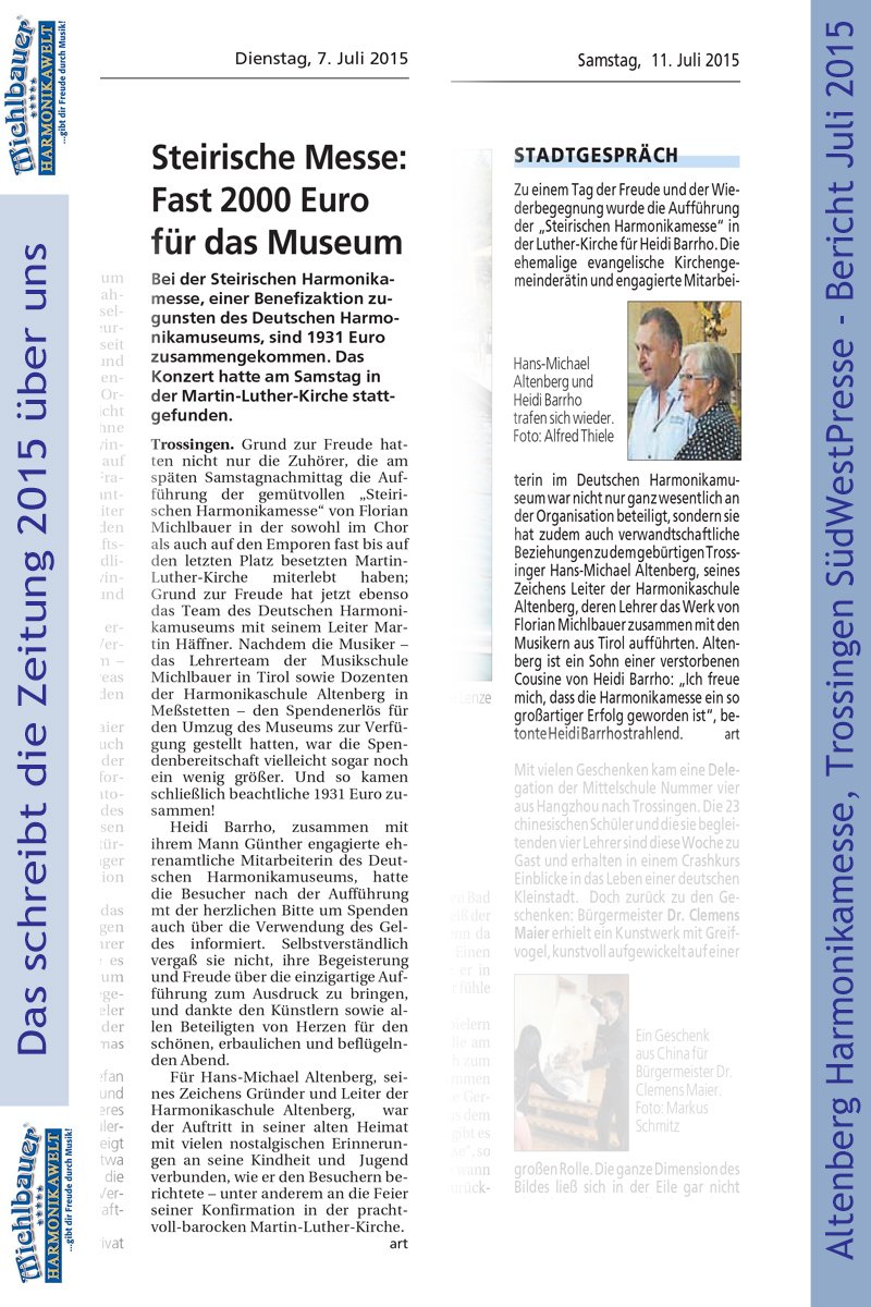 Bei der Steirischen Harmonikamesse, einer Benefizaktion zugunsten des Deutschen Harmonikamuseums, sind 1931 Euro zusammengekommen. Das Konzert hatte am Samstag in der Martin-Luther-Kirche stattgefunden.