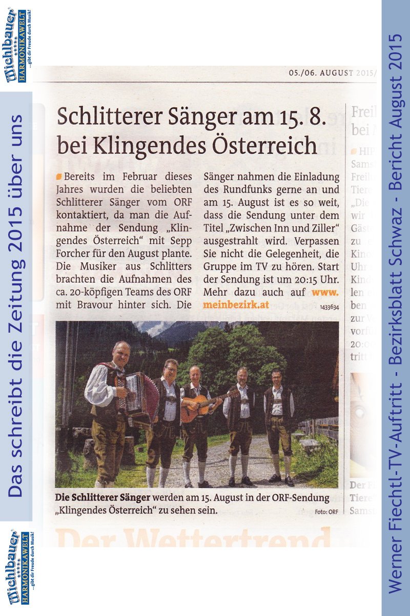 Schlitterer Sänger am 15.8. bei Klingendes Österreich