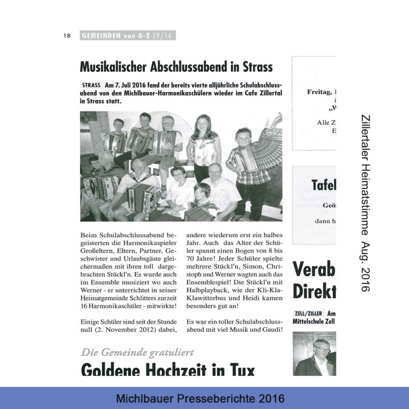 STRASS Am 7. Juli 2016 fand der bereits vierte alljährliche Schulabschlussabend von den Michlbauer-Harmonikaschülern wieder im Cafe Zillertal in Strass statt.