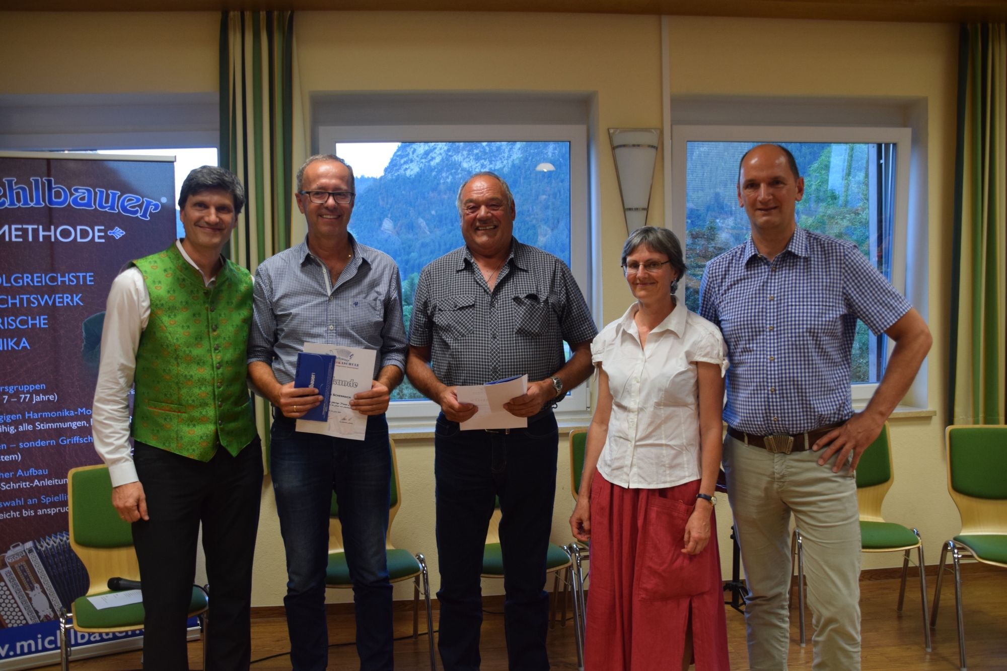 Anfang Mai startete Michlbauer mit diesem Musizier-Workshop im neu eröffneten Harmonika Trainingscenter in die heurige Sommersaison. Zum Auftakt war eine 8-köpfige Harmonikagruppe aus den Niederlanden im neuen Michlbauer-Haus in Reutte zu Besuch. Sie nützten die Gelegenheit ihren einwöchigen Urlaub in der Naturparkregion Reutte mit einem Intensiv-Workshop beim musikalischen Leiter Johannes Petz in der Michlbauer Harmonikawelt zu verbinden. Die Teilnehmer zeigten sich vom Workshop nicht nur begeistert, sondern nahmen neben vielen schönen Eindrücken auch ein Stück alpenländische Musikkultur mit in ihre Heimat, welche sie dort dann wieder weitertragen.