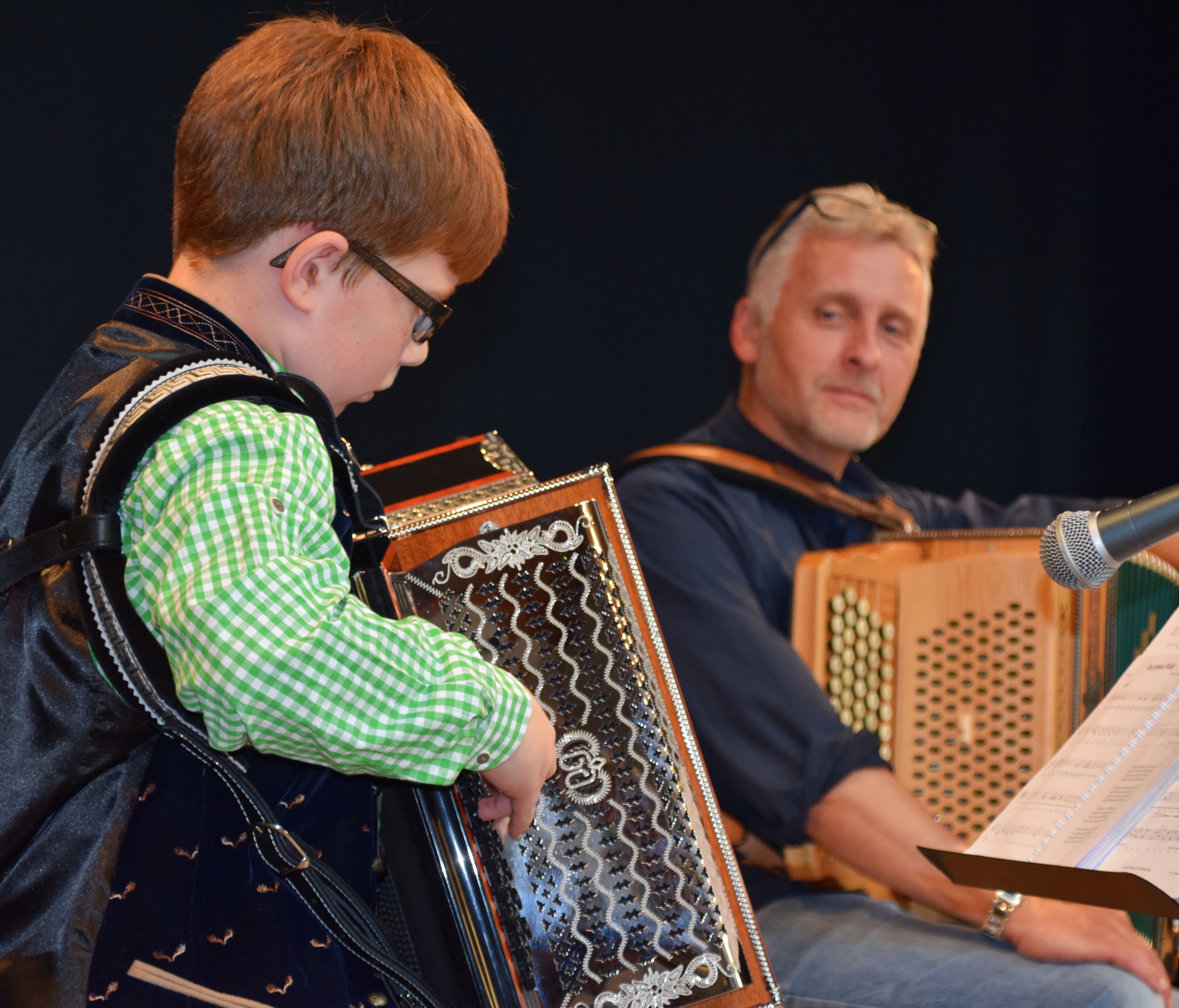 Prof. Florian Michlbauer war es auch, der dann gemeinsam mit seinem Sohn Daniel für tosenden Applaus beim Abendkonzert am Samstag sorgte. Die beiden Harmonika-Profis gaben Einblick in das riesige Repertoire, das über die heimische Volksmusik hinaus nach Übersee zu Country & Western Melodien reichte aber auch mit Mozarts Kleiner Nachtmusik und CanCan von Wilhelm Tell einen Ausflug in die Klassik machten.