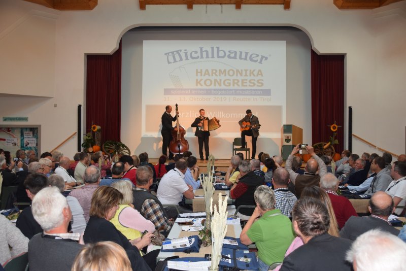 Das Veranstaltungszentrum in Breitenwang/Tirol ist verschiedenartigste Events gewohnt, doch das gab es hier auch noch nie: ein Kongress nur zum Thema „Steirische Harmonika“. Die Michlbauer Harmonikawelt feiert ihr 15-jähriges Bestehen und lud Schüler, Spieler und Lehrer dieses beliebten Volksmusikinstruments am vergangenen Wochenende (13.-15.10.2017) zum 1. Michlbauer Kongress ins VZ Breitenwang. Unter dem Motto „Harmonika: begegnen – lernen – musizieren“ fanden interessante Workshops, gesellige Treffen und faszinierende Konzerte statt.