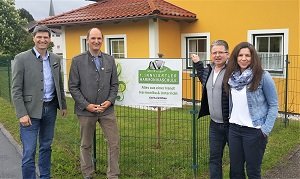 Freuen sich über die Zusammenarbeit: v.l. Rene Brilej (Inhaber Harmonika Südklang), Prof. Florian Michlbauer, Direktor Johannes Petz und Geschäftsführer Heinrich Schedler.
