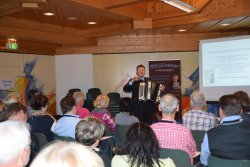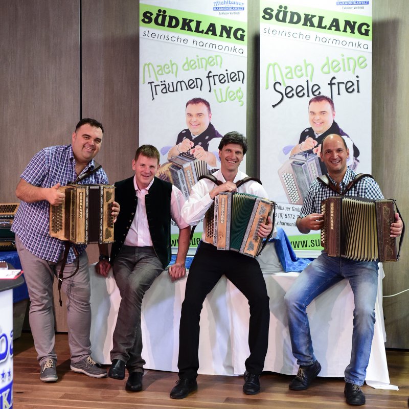 Mehr als 200 Besucher konnten auch die Modelle einer neuen Harmonika-Marke aus Slowenien direkt testen. Firmeninhaber Rene Brilej präsentierte seine neu entwickelten Südklang-Harmonikas, und referierte über die Entwicklung der Oberkrainer Musik und die spezielle Begleittechnik auf der Steirischen Harmonika.
