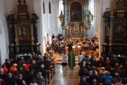 Der Sonntag begann mit einer feierlichen Messe in der Reuttener Pfarrkirche St. Anna. Das große Harmonika-Orchester setzte sich aus über 20 Kongressteilnehmer und Lehrer zusammen.