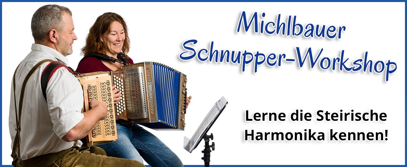 Wenn du die Steirische Harmonika kennen lernen willst, dann bist du beim Michlbauer Schnupper-Workshop genau richtig.